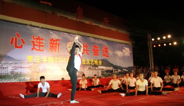晚会在一段展示青春活力,尽显朝气的开场群舞《拥抱未来》中拉开了序幕,首先出场的是欢快高雅的交响乐《威廉退尔》,其充分展示了西洋乐的艺术特点,可谓气势宏伟,振奋人心。其后,歌伴舞《阳光路上》、《春天的芭蕾》,合唱《托起枣院辉煌的明天》,欢快的民乐交响《金蛇狂舞》,让观众感受到欢快的气息。琵琶、竹笛、二胡民乐连奏,展示了老师们的娴熟技艺,引来现场观众一阵阵喝彩。教官节目《匕首操》嘹亮的口号、帅气的动作,无不昭显教官的阳刚之气,赢得了师生热烈的掌声;教官节目男声独唱《父亲》,深情的演唱,感染了现场的每一个人;随后是国标舞《炫动青春》、群舞《梅园梅》、相声说逗《窈窕淑女》,给晚会增添了不同的色彩。以我院自强学子为原型编排的群舞《我的未来不是梦》,震撼了每一个现场观众的心灵,更将晚会推上了高潮,相信这也会激励新生们努力的学习,发扬刻苦的精神。晚会在大合唱《歌唱祖国》中圆满落幕。