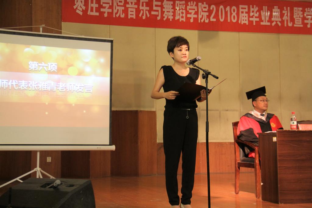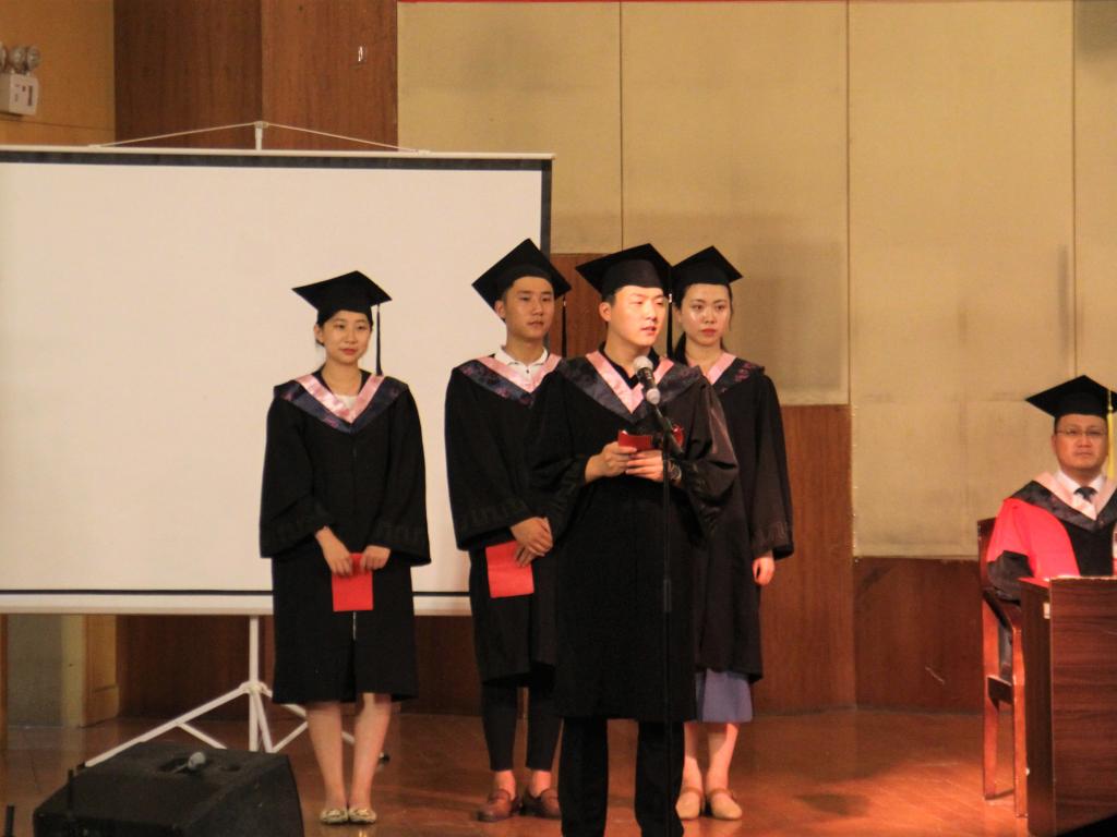 毕业生班主任张涛、杨川川老师接受了2018届毕业生向学院赠送的纪念品;教师代表张雅青老师表达了对毕业生的不舍之情和殷切嘱托,现场很多师生热泪盈眶、为之动容;周盛琳代表在校生为即将离开母校的学长学姐表达了诚挚的祝福;毕业生代表刘雅菲、寇兴朔、杜佳、杨将等同学发表了毕业致词,情真意切、感人至深。最后校级优秀毕业生、原学生会主席李泓洋带领全体毕业生隆重宣誓,不忘母校培育恩情,誓做国家栋梁之才,为老师增光,为母校添彩。