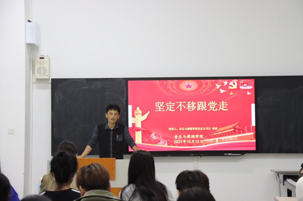 高原书记围绕“坚定不移跟党走”这一主题,展开本次党课培训,首先以为什么要入党这一问题切入,结合自身经历,用朴实生动的语言结合中国共产党发展历程中的丰功伟绩向同学们讲授了一场有血有肉的党课:一、强调作为一名共产党员,要牢记党的宗旨,全心全意为人民服务。二、结合中国发展历史,阐述了只有在中国共产党的领导下,中国人民和中华民族才能走向富强,实现伟大复兴的中国梦。三、学习习近平总书记在建党100周年庆祝大会上的讲话,一百年来,中国共产党弘扬伟大建党精神,在长期奋斗中构建起中国共产党人的精神谱系,锤炼出鲜明的政治品格。我们要继续弘扬光荣传统、赓续红色血脉,永远把伟大建党精神继承下去、发扬光大。